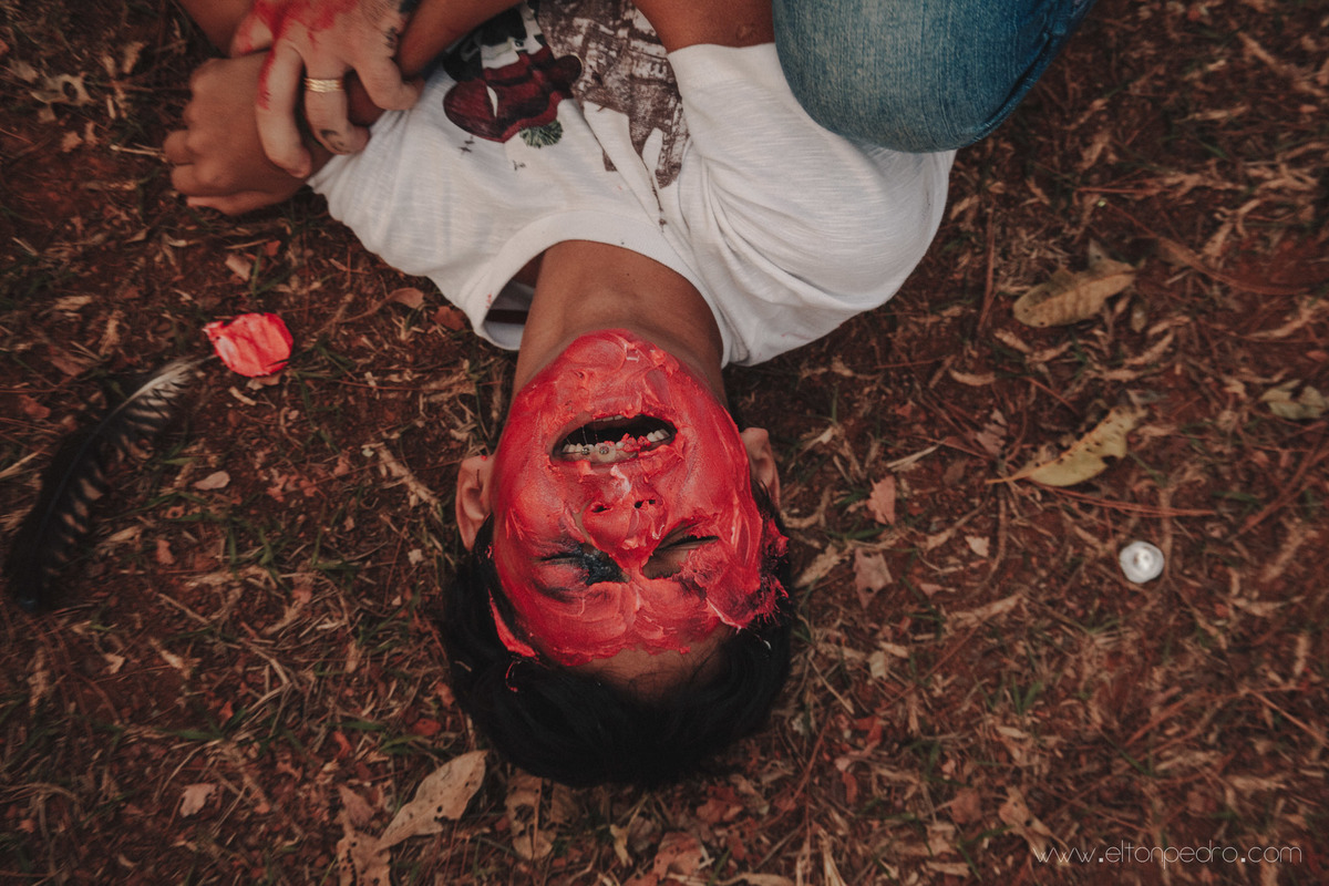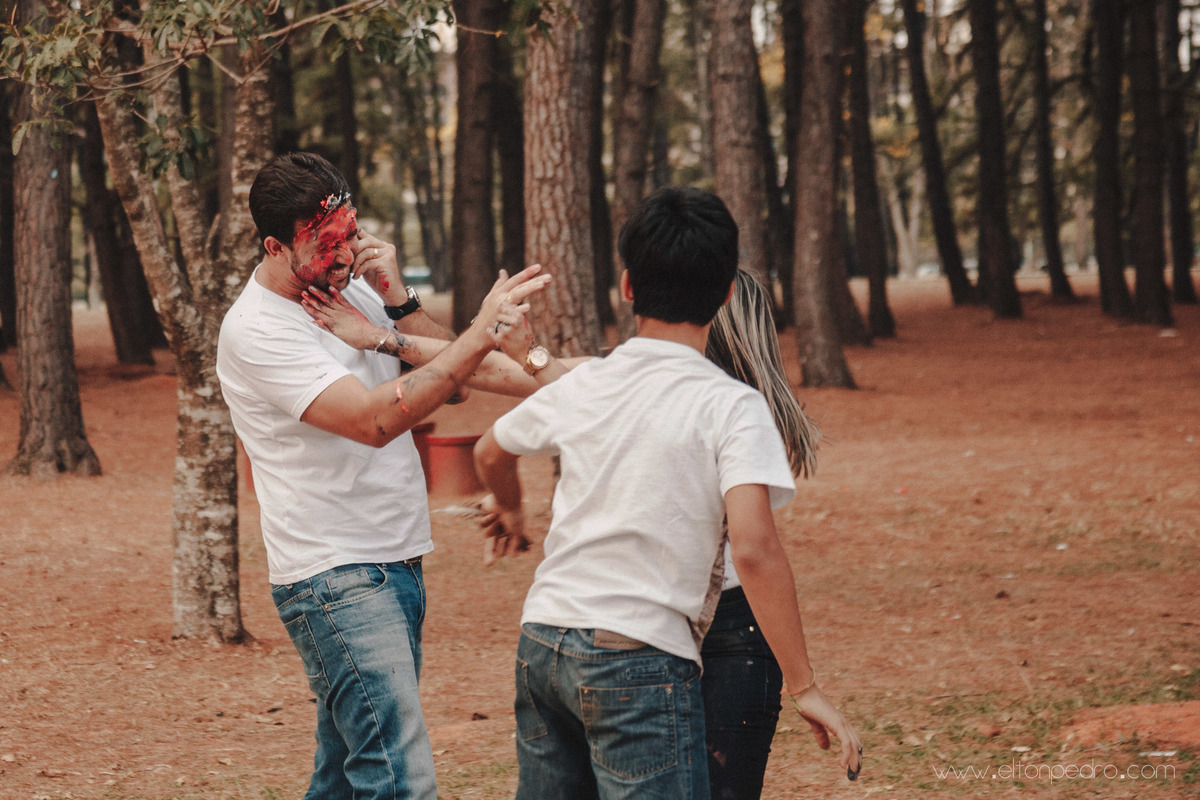 O Pedro tomou um mini tombo e não gostou mais do bolo, que virou arma de guerra nas mãos: Da Lidi, do Dani e do Yago kkkk
